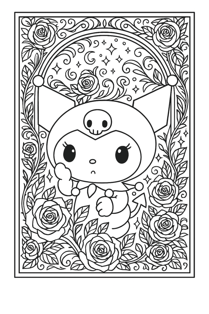 We have commissioned 11 incredible Kuromi free Coloring pages for you to have fun with. If you don’t know, Kuromi is My Meldoy’s chaotic frenemy! She has a gang called the “Kuromi’s 5.”